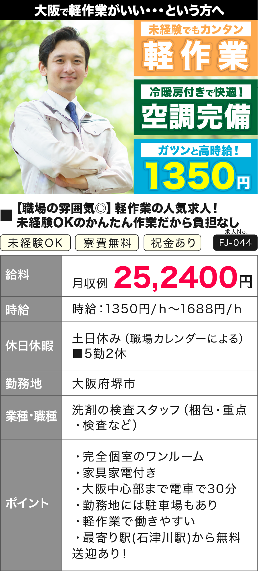軽作業や仕分け作業など簡単な業務の仕事も多いから体に負担もない!