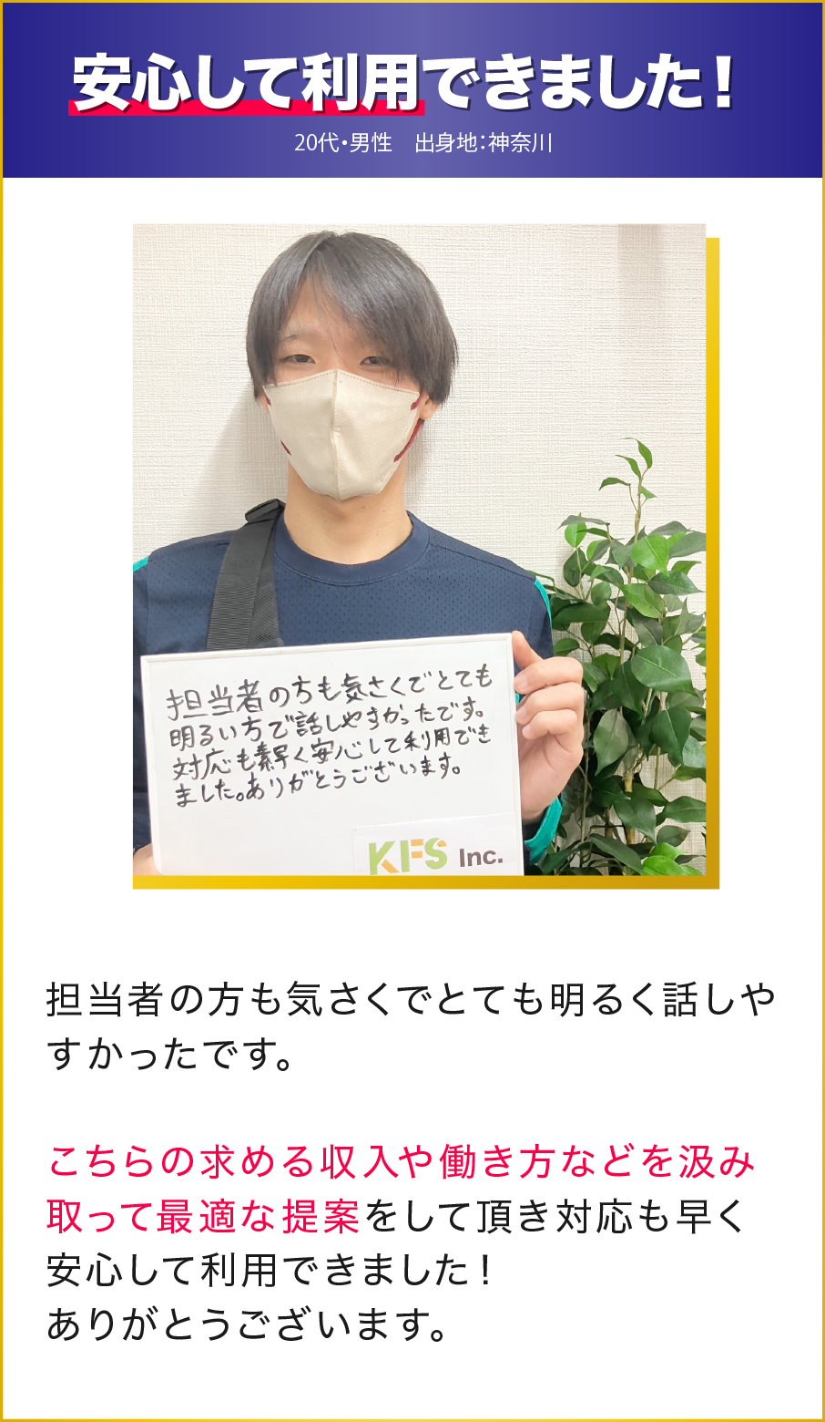 働き方や給料、休み、などなど一人一人の環境や状況に合わせた提案を行います。